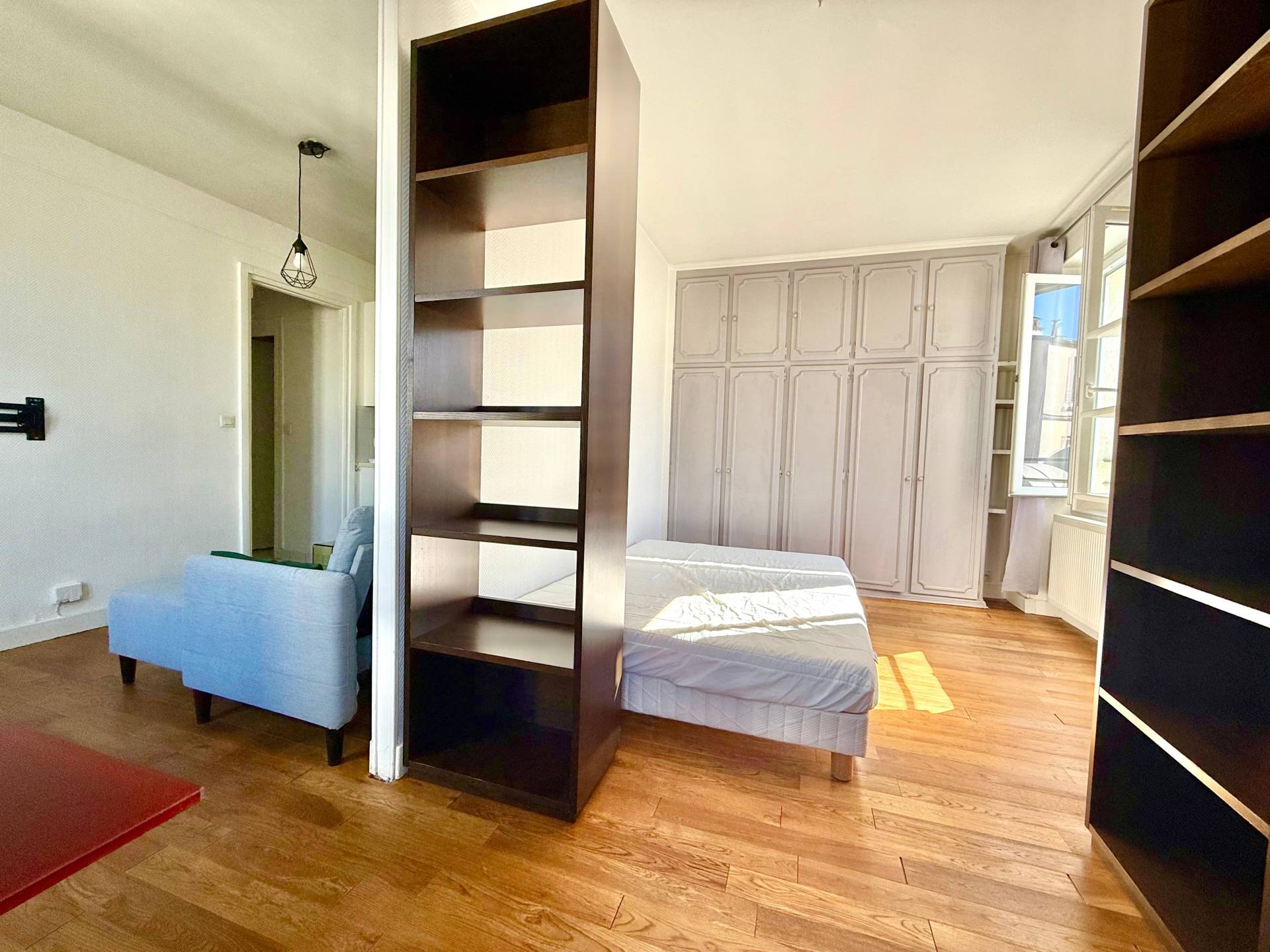 Double vitrage, parquet en chêne, possibilité d’ouvrir le séjour sur la chambre pour créer un bel espace de vie.