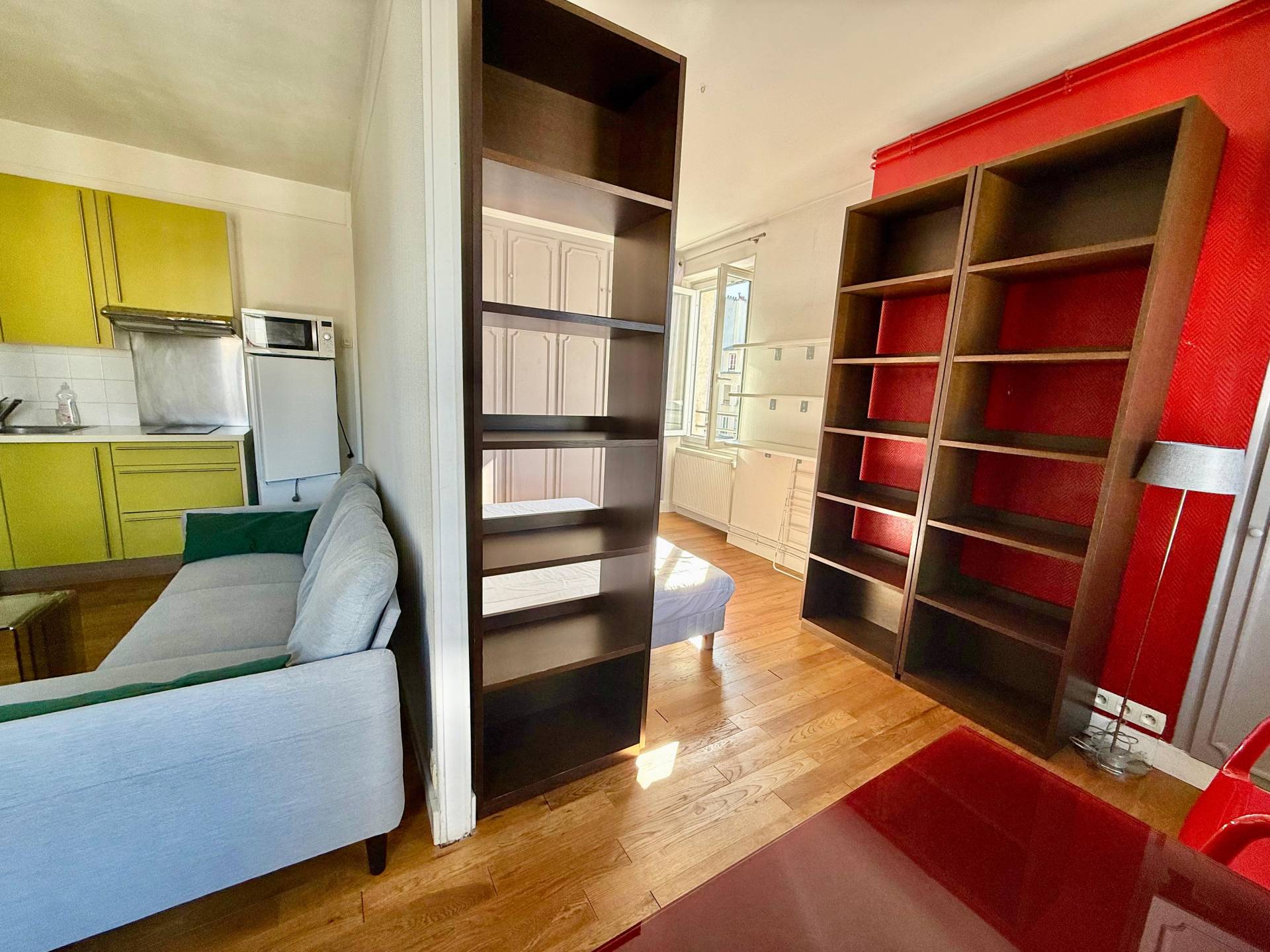 Double vitrage, parquet en chêne, possibilité d’ouvrir le séjour sur la chambre pour créer un bel espace de vie.